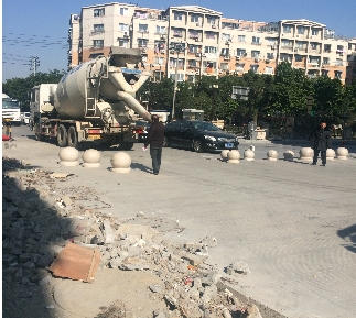 昨日,记者来到现场,看见网友所说的石墩形成一道路障,但是中间空出了一段可供一辆车通行的宽度,几个石墩被移到了旁边。据路人介绍,这些石墩原本是隔一两米一个,排成一条直线,车辆无法通行。现场,有几辆工程车正在掉头往外行驶,一位管理大伯正在指挥工程车往外倒车。据他介绍,这个石墩的设置是经有关部门批准的,平时都是围上的,今天由于公园路施工,方便工程车通过才移出一段可供通行的宽度。