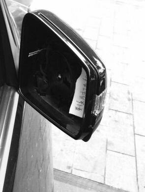 多辆豪车后视镜被偷 小偷留纸条称“付钱就还”