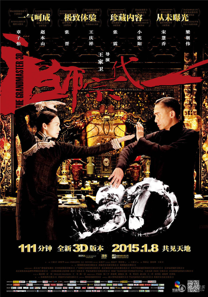 腾讯娱乐讯由博纳影业、泽东电影和银都机构联合出品,王家卫执导,梁朝伟、章子怡、张震(微博)等主演的传奇3D动作巨制《一代宗师3D》,2015年1月8日即将全国公映。《一代宗师3D》是导演王家卫的首部3D电影,也是前所未有的以3D技术形式纤毫毕现地展示中国独特美学神韵的作品。王家卫与好莱坞顶尖3D团队Gener8合作,后者凭借雄厚的实力挑战3D制作的“雷区”,将片中的雨雪镜影和功夫招式呈现得立体逼真。更因有王家卫导演在制作中全程把握精髓理念,令电影惊艳地表达了功夫所背后包蕴的精神意境和中国美学。“我带《一代宗师》走过很多地方,”王家卫称,“我一直在想,如果这个电影是3D版本会是什么样呢?应该很过瘾吧。”