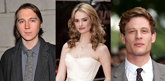 新浪娱乐讯北京时间12月28日消息,据国外媒体报道,由BBC和温斯坦公司(The Weinstein Co。)联合制作的六集大型电视剧《战争与和平》(War and Peace)主演人选本周日公布,迪士尼新版《灰姑娘》主演莉莉·詹姆斯(Lily James)将出演女主角“娜塔莎”(Natasha Rostova),而《血色黑金》(There Will Be Blood)的保罗·达诺(Paul Dano)与《佳人蓓儿》(Belle)的詹姆斯·诺顿(James Norton)则将分别饰演“彼埃尔”(Pierre Bezukhov)和“安德烈”(Prince Andrei Bolkonsky)。
