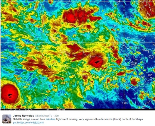 失联原因:飞行员在客机失联前曾向印尼空管人员要求偏离原定航线,并从约9700米的高度拉升到约11500米高度,以躲避恶劣天气。因此有人猜测是因为客机遇上雷暴天气。但有专家认为,当时的天气状况不算恶劣,风力不大,云层也不厚,飞机似乎不需要偏离航线。