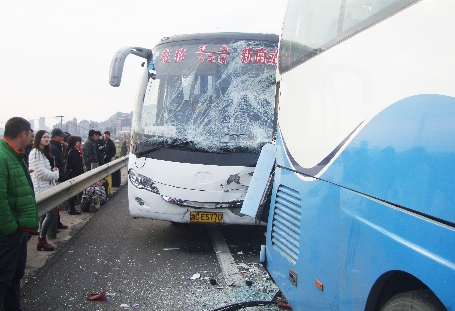 白色轿车后方一辆浙J牌照的客运车见前方有情况,连忙刹车停下。然而紧跟其后的另一辆浙C牌照的大客车因制动不及时,直接撞上前方客车,最终致现场三车追尾。