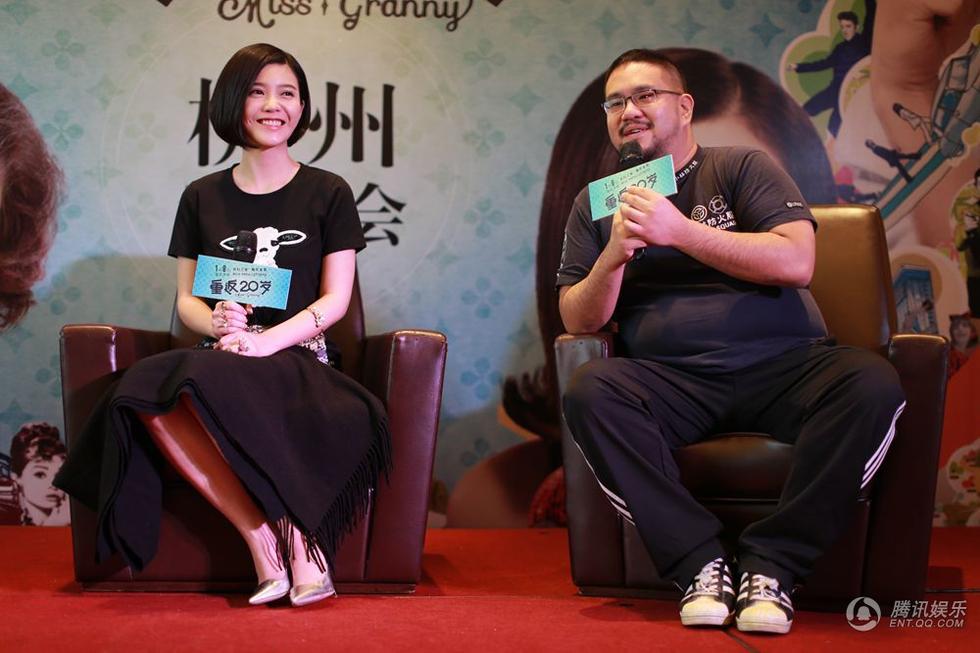 腾讯娱乐讯昨日,由陈正道执导,“薇女郎”杨子姗、金马影后归亚蕾(微博)、“大仁哥”陈柏霖(微博)及超人气偶像鹿晗领衔主演的奇幻爱情喜剧《重返20岁》在杭州举办发布会,导演陈正道携杨子姗亮相活动现场。不久前在京举办的数场看片会中,该片获得媒体盛赞“好看”。