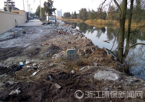 沿河倾倒的各种垃圾、固废