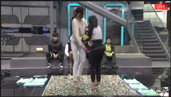 刘妙和王希维这一组最先接受挑战,在行进中痛到不停尖叫。王希维甚至用屁股来帮助自己在指压板上前进。在完成任务后,王希维向其他选手抱怨:“你们知道我不是一个娇气的人!这是我们做过的所有游戏里最残忍的!”刘妙也皱着眉头表示:“我汗都出来了。”之前官微君在微博上发起“哪位选手会因痛大叫最淋漓”的投票,王希维票数远远领先,确实没有辜负网友们的投票。她忧伤地在微博写道:“不好意思,我是尖叫女王!真的超级疼!大家耳朵没事吧!”
