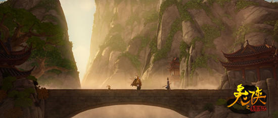 此外,还有一幅场景图尤其值得注意,兔侠站在竹林之间,似乎将与敌人在此展开决战。虽然场景中传递的消息较少,但“竹林大战”却是中国古典武侠的经典场面,此前在胡金铨执导的《侠女》、李安执导的《卧虎藏龙》以及张艺谋执导的《十面埋伏》中都有浓墨重彩的精彩表现。对此,片方也透露,“竹林大战确实有致敬的意味。实景拍摄不容易,其实动画制作更难,因为要表现竹林的层次和细节,还要呈现人物的形体和动作,但从现在的效果来看,大家都很满意,也希望影迷和观众从中体会到我们的用心和用意。”而兔侠与小伙伴走在石桥上以及仰视山上宫殿的场景,则极力凸显了险恶的地理环境以及易守难攻的建筑群,为兔侠和小伙伴的出征蒙上的一层阴影。据悉,兔侠在这里不仅接受最大的考验,还将面临各种想不到的危险。