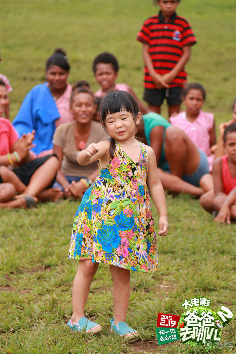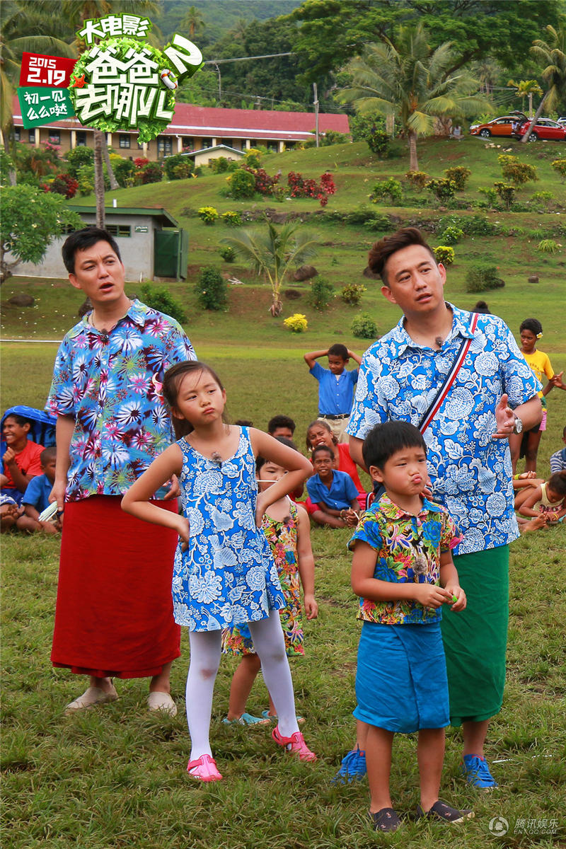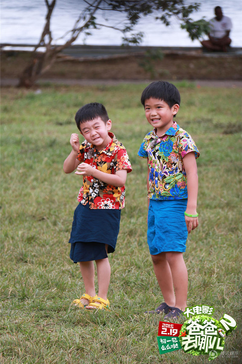 姐姐和Joe的花衣上是满满的斐济绮丽花朵,表情依旧呆萌可爱。现在工作人员纷纷表示“姐姐穿了花衣服,配着圆嘟嘟的小脸,好像一种很好吃的水果哦!”杨阳洋身穿金红黑色调花衣,神色欢喜。据导演谢涤葵透露:“萌娃花衣服的颜色和图案都是剧组精心挑选的,代表着斐济的美景和富饶的资源。”片方负责人同时表示,特意曝光这组具有斐济当地特色、颜色艳丽的花衣裳,邀请大家和萌娃们欢乐贺岁,共同期待羊年大年初一《爸爸去哪儿2大电影》为大家开启绚烂多彩的2015年。
