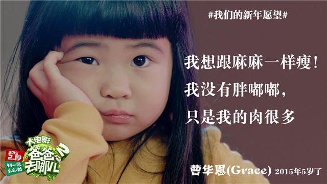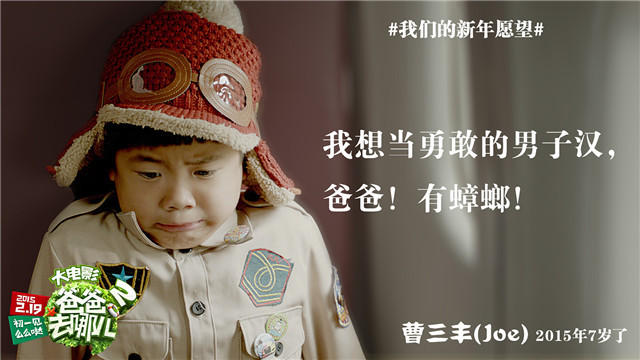 与“快乐远征”主题海报同时曝光的是一组“萌萌哒”萌娃贺岁组图,一张张稚嫩生动的小脸表情搞怪可爱,令人忍俊不禁。“天然呆”的Joe头戴飞行员帽子面露惊恐之色;活泼傲娇的姐姐又撅起圆嘟嘟的小嘴煞是可爱;“自然萌”的贝儿穿起空军制服有模有样;而杨阳洋的迷彩服也显出别样霸气;多多表情灵动可人似是对这趟旅程充满希冀。据悉,此组剧照专为贺岁迎新打造,剧照中还写下了各位萌娃的新年愿望,一件件单纯美好的小事情让人们忍不住感叹“儿童的世界真美好,原来幸福曾这般简单”。导演谢涤葵表示,影片将带观众共同体验爸爸与萌娃们在一起的欢乐时光。作为开创“中国亲子唯一品牌”的系列电影,它将会使许多观影人联想起自己幼年成长的憨萌童趣,或初为父母的快乐点滴,给全家带来无尽的欢乐和情感的共鸣。