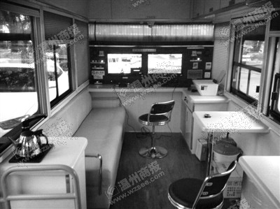 车顶装有摄像头,车内配备了办公设备。城管供图