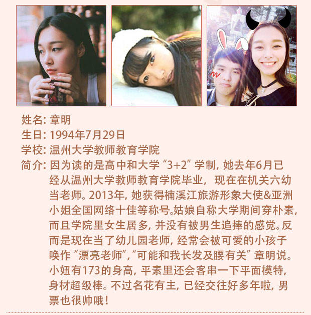 温州网讯 最近,《奔跑吧兄弟》的跑男团满武汉大学寻找樱花女神的举动,捧红了武大校花黄灿灿,也再次掀起各大高校的最美校花之争。记者网罗全国各大高校最新校花榜,发现其中有不少温州妹子。