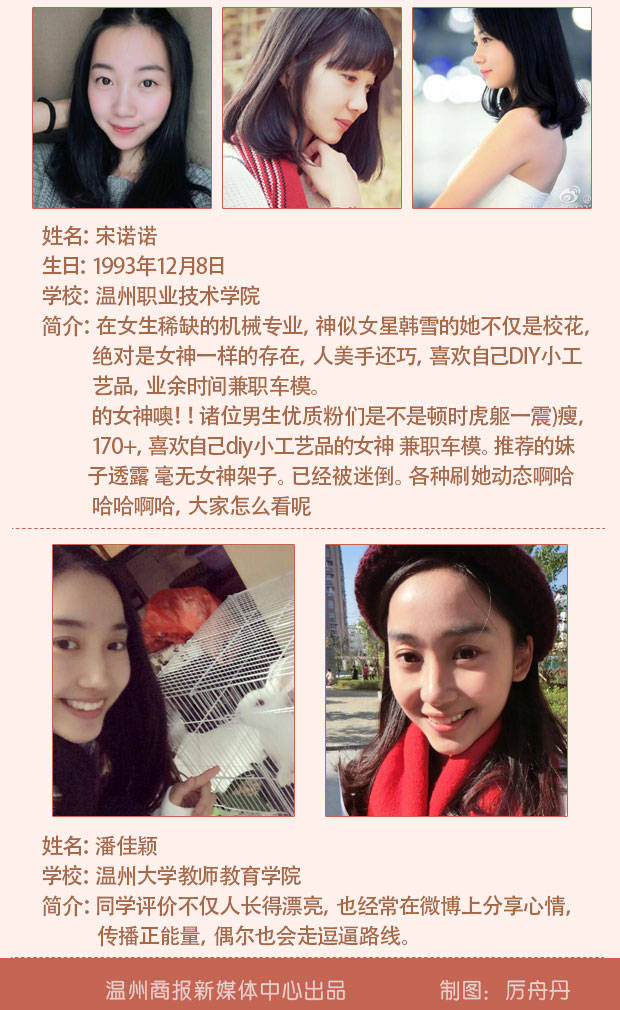 记者网罗全国各大高校最新校花榜,发现其中有不少温州妹子。