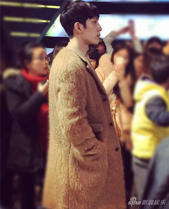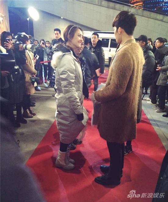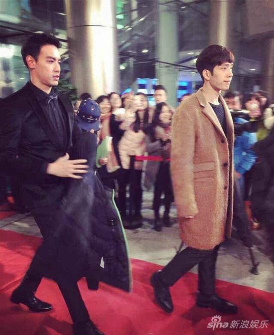 照片中主演井柏然身穿一件设计新颖的驼色茸感大衣,黑色针织衫和长裤,秉持他一贯简单帅气的穿衣原则,在人群中显得尤为亮眼。郑爽身着红色低胸晚礼服,被饰演其经纪人的谢依霖护在身侧。
