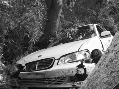 回想起当时的一幕,樊先生仍有些后怕。他说,当天晚上,他与朋友在景山上喝过茶后开车下山。车子开到山脚下三号花坛位置,正值转弯,感觉右转弯打得有点大的樊先生,紧急踩了刹车,没料,因惯性,加上雨天路滑,车子左前方直接撞到路边一棵小树上,随后尾部甩出,整个车侧翻下山路。所幸,车子撞在一棵大树上停了下来。