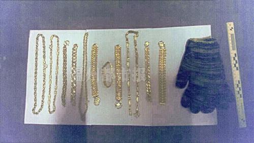 接着,林某逃离金店。因害怕随身携带物品会让人认出自己,他在沪山社区山北村平安桥头将水果刀扔入河中。之后,林某还不放心,把头盔、雨衣、裤子、鞋子等裹起来扔到萧江镇下汇村铁路桥附近。回到家后,林某发现黄金首饰共有16件,就把它们用粗纱手套包好藏起来。