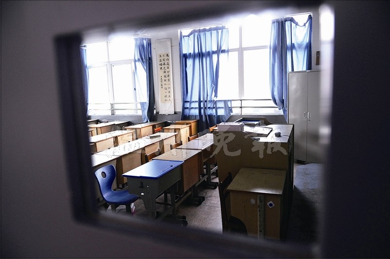 记者在学校转了一圈,并没有看到任何文字性的停课通知,或者提醒大家注意提防腹泻疾病的告示,不过,学生所指的已停课的两个班级教室内的确空无一人。