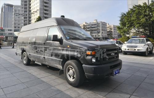 市公安局车库停着一辆黑色的福特厢式货车,外观上没什么特别,可里面却别有洞天,这就是“动中通”卫星车。