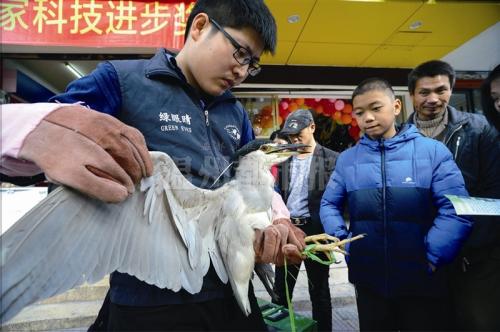 江边一只大鸟被困渔网 热心人把它交给“绿眼睛”