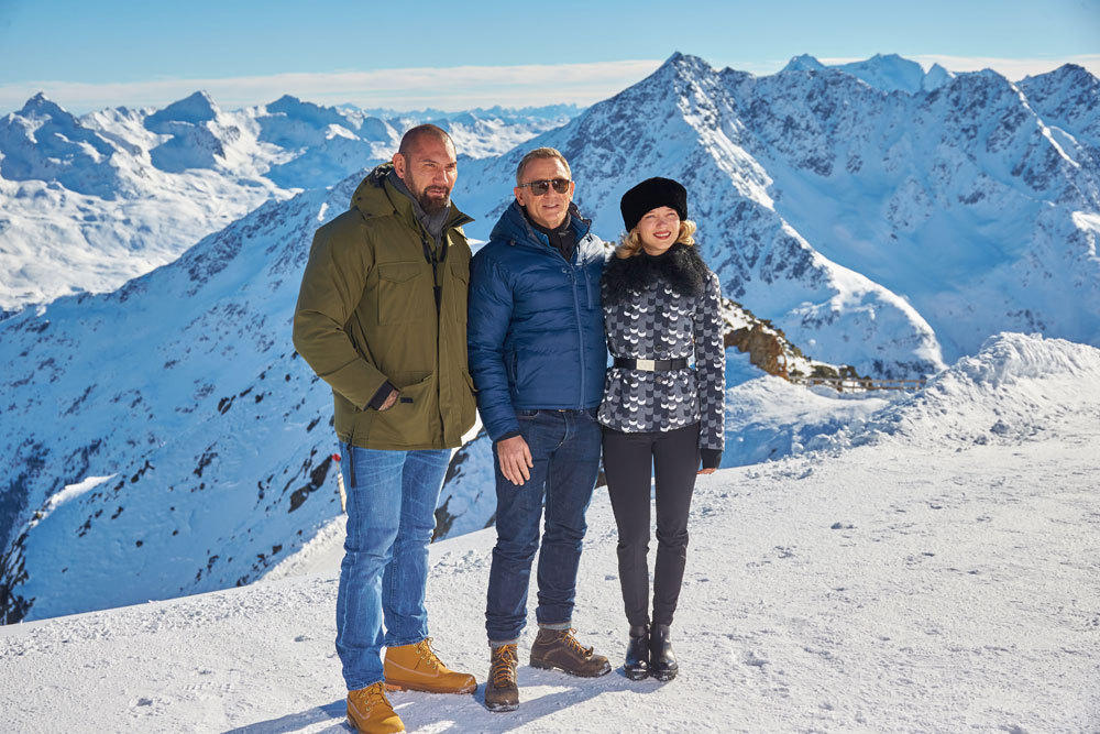 腾讯娱乐讯圣诞过后,《邦德24》剧组即在奥地利的冰天雪地中投入拍摄。近日,片方发布了最新片场照,“007”丹尼尔·克雷格,新任邦女郎蕾雅·赛杜以及“毁灭者”戴夫·巴蒂斯塔悉数亮相,在雪山的背景下亲密合影。