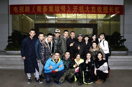 《青春集结号》开机尚敬与主演合影