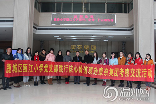 温州网讯 11月27日,鹿城区瓯江小学党支部开展了践行社会主义核心价值观赴康奈集团考察交流活动。学校近二十名党员教师在党支部潘贤呈副书记的带领下参与了本次活动。
