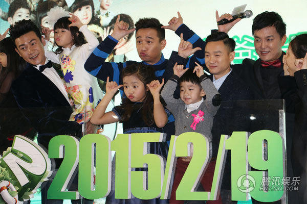 《爸爸2》电影发布会 杨威杨阳洋送羊年萌祝福
