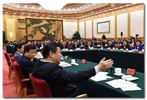 △ 2015年1月12日,习近平在北京主持召开座谈会,同中央党校第一期县委书记研修班学员进行座谈并发表重要讲话。新华社记者饶爱民摄
