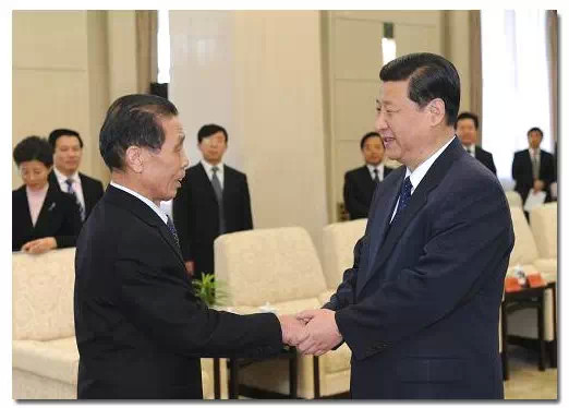 △ 2009年12月31日,王伯祥同志先进事迹报告会在北京人民大会堂举行。报告会前,习近平与王伯祥握手。