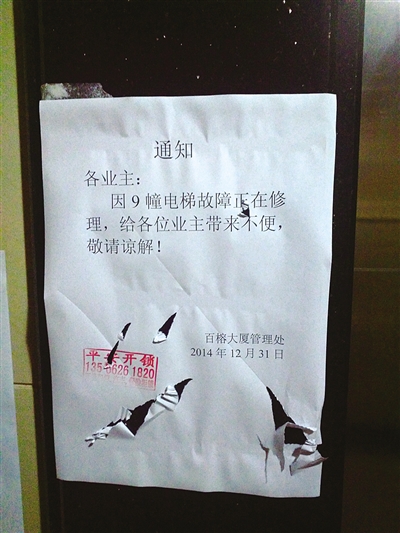 居民们担心,百榕大厦的电梯经常发生故障,而且居然连个应急电源都没有,整天坐这样的电梯上下楼,真是让人慌上加慌。