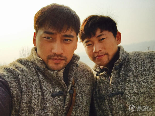 腾讯娱乐讯近日,演员张旭正在山东低调拍摄抗战题材电视剧《血战抱犊崮》。日前,张旭先后晒出与该剧合作演员幕后合照,其中有搞怪主题的照片,也不乏文艺主题的唯美自拍,还在一张与王挺的合照旁配上文字说明:“两个好莱坞巨星坐在一起,商量抗日的事儿。”