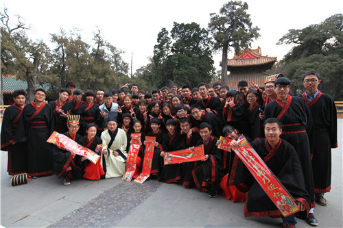 据悉,成人礼也称“冠笄之礼”,参礼者身着汉服,接受长者加冠及笄,并向先师孔子行作揖礼,便代表成人,迈入新的人生阶段。1月12日,三位“90后”明星白举纲、关晓彤和李家成,与60位学子一起,在古老巍峨的孔庙殿台上接受了成人礼仪式。他们身着统一的汉服,俨然是庄重的儒家学子。随后,一群衣着时尚的年轻人在殿前广场上跳起了现代舞蹈,极具现代气息的快闪活动与充满传统气息的中华传统礼仪结合在一起,让视觉冲击尤为强烈。