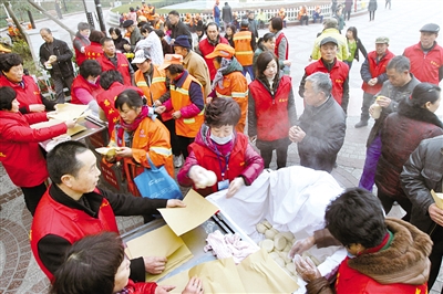 温州网讯 清晨,天刚蒙蒙亮,瑞安玉海广场的崇德慈爱站前已经聚集了一群前来领取爱心面包的人。他们之中有早出晚归的环卫工人、难以温饱的社会流浪者、来医院等候就诊的病员……当义工们将冒着热气的豆浆和面包递入他们手中时,这一刻短暂的接触,暖的是心,传的是情。