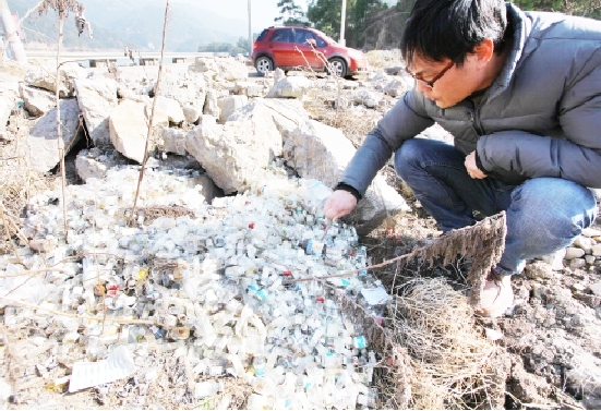 温州淡溪水库边惊现医疗垃圾 部分药瓶里还有药水