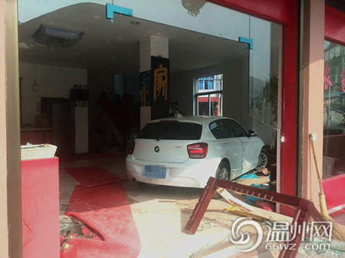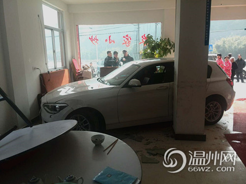 温州女司机把油门当刹车 开着宝马车冲进农家乐