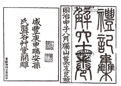 《礼记集解》是一部百万字的著作。孙希旦三易其稿,书稿上红笔修改,剪纸粘贴增补,生前尚未刊刻。清道光年间,瑞安项霁、项傅霖兄弟与乡人商议,图谋刊刻,开始着手整理,项傅霖校勘了前十卷,项氏两兄弟先后去世。咸丰三年(1853),孙锵鸣回到家乡,继续此项整理工作,将书稿厘定为六十一卷,并作序在卷首,又附《尚书顾命解》一卷于书后。乡人集资,合力运作,咸丰十年(1860),在瑞安孙氏盘谷草堂开始雕版,由东瓯梅师古斋刻字,中途遇战乱而雕版被毁一半,至同治七年(1868),该书刊刻功成。