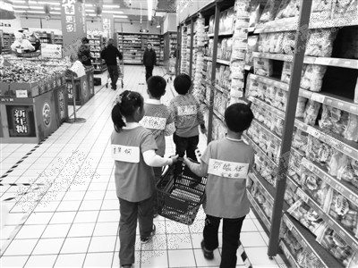 小朋友在超市做任务。(受访者供图)