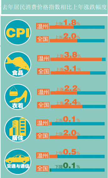 2014年温州CPI上涨1.8% 看看钱都是花在哪儿了