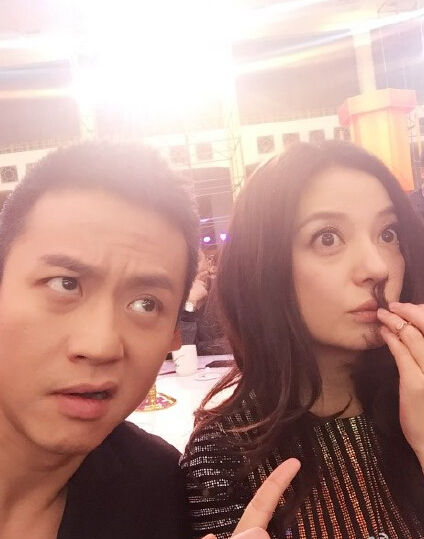 赵薇在微博晒出两张与邓超的合影照,赵薇写道“在这美好滴大联欢上,看到了皇阿玛,还有容嬷嬷,还有神精饼~被要求扮演女神与女神经”。