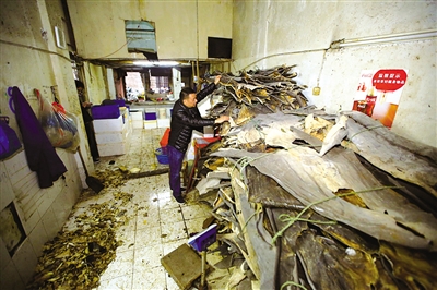 温州网讯 昨天,景山街道工作人员在工商、质监、公安等部门的配合下,在景山街道净水老工业区内查获一处无证鱼皮、海参加工点,涉案金额达数十万元。这个非法加工点其利用废弃工厂办作坊,平时大门紧闭,但发泡鲨鱼皮和海参发出的气味非常刺鼻。加工点内更是污水横流,墙角布满蜘蛛网。