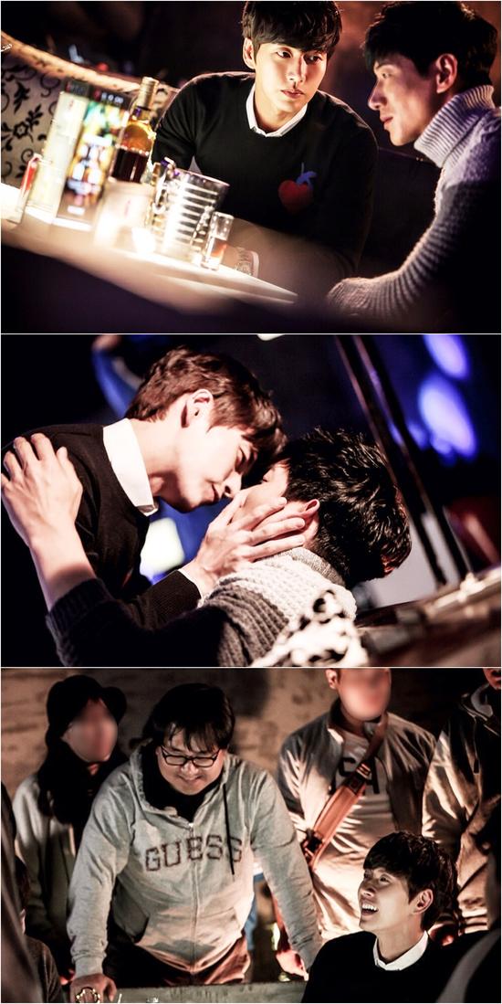 这一幕其实是拍摄朴海镇和张亮在酒吧喝到伶仃大醉甚至差点接吻的场面。朴海镇和剧组里的至亲张亮即兴发挥上演了照片中的“激情戏码”,让现场陷入了笑海。