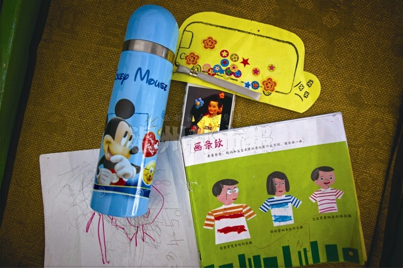 洋洋生前就读的幼儿园园长郑老师交给记者一些洋洋生前留在幼儿园的物品,希望转交家属。这些东西是一个蓝色米老鼠保温杯,一本幼儿园数学教材,一张洋洋的红星奖励表。记者拨通洋洋爸爸的电话,表明身份后,他称自己忙着处理事情,随后挂掉电话。