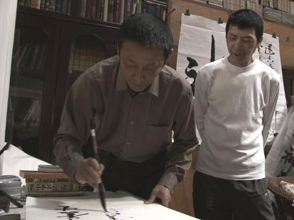 冯小刚观摩陈道明写书法