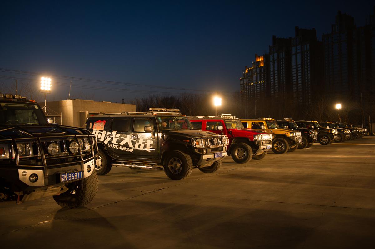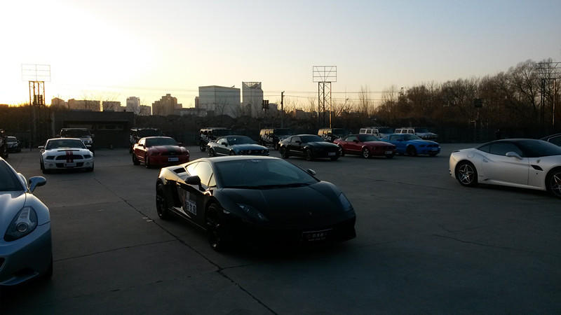 腾讯娱乐讯2015年1月27日下午,北京枫花园汽车电影院内群星荟萃。无数量悍马、法拉利、玛莎拉蒂、兰博基尼、阿斯顿马丁等总价值亿万的豪车云集,十余名靓丽车模不畏严寒,薄装上阵,整个场面堪比一场豪车展览会。