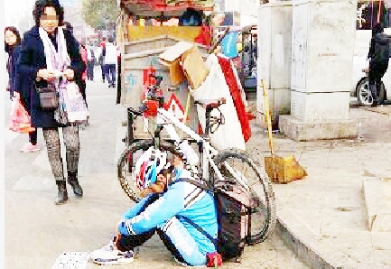 山地车当道具 乐清街头现“落难骑士”讨钱