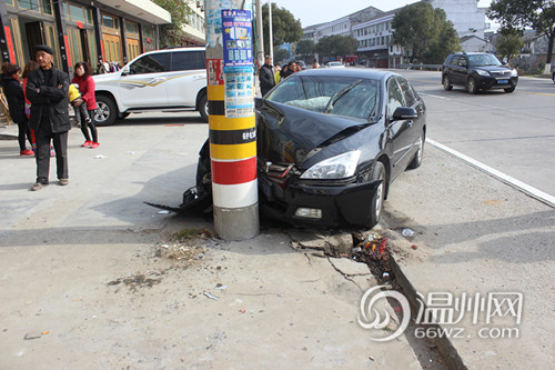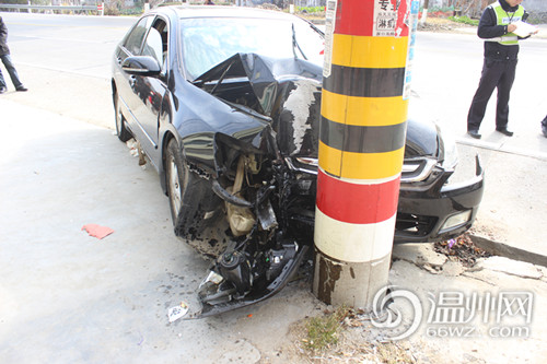 只因打了个大喷嚏 温州男子驾车一头撞上电线杆
