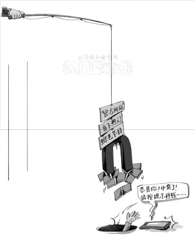 “跑男”节目真叫火, “荣登”骗子新榜单。 “中奖”从来是罕事, “奥特”损失九千元。