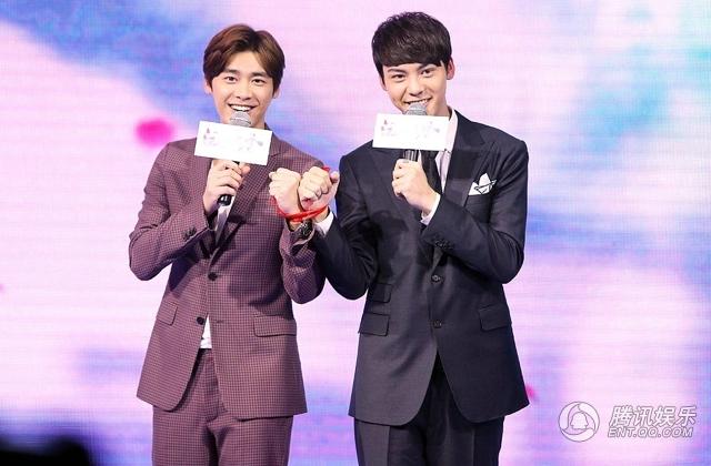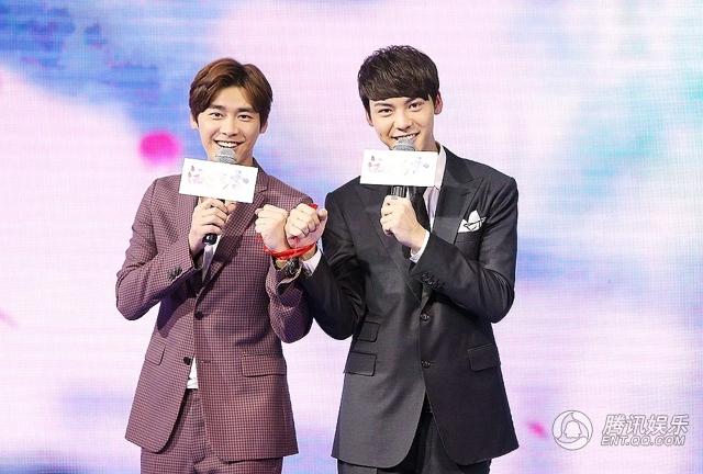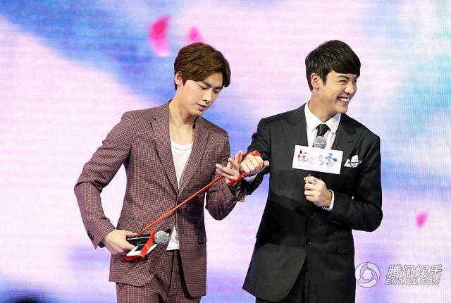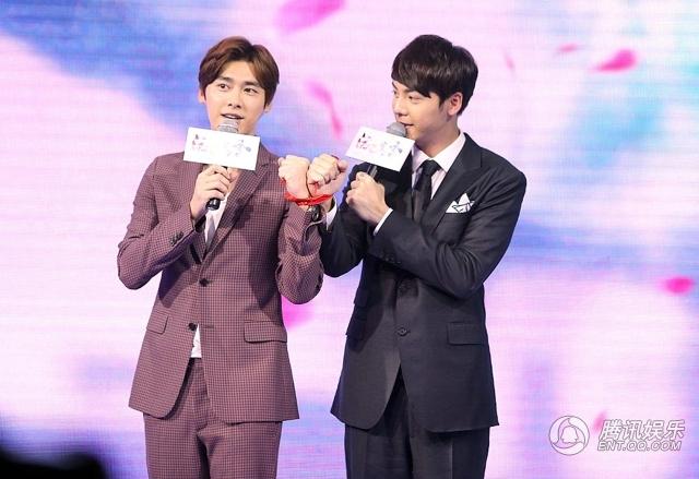 而最受期待的就是李易峰和陈伟霆如何展现他们之间的关系,只见两人将手仅仅握在一起,然后用红绳缠住,象征“手足情深”,引得粉丝竞相拍照。