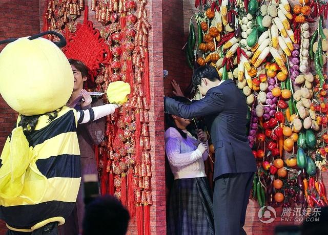 唐嫣、李易峰、舒畅、陈伟霆四位主演还在现场玩起了“人物关系连连看”的游戏,用两根红绳将四个人之间戏中的人物关系联系起来,互抽红绳用动作来展示关系。