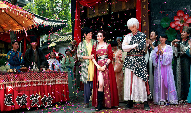 腾讯娱乐讯由陈赫(微博)(微信号:chenhe1109)、姜妍、王传君、张子萱等人主演的古装探案喜剧《医馆笑传》正在安徽卫视、腾讯视频热播。虽然故事发生在500年前的大明朝,但剧中各大主角的现代杀马特造型却让人倍感“穿越”。尤其是女主角姜妍一头红发,高衩配抹胸的服装设计,打戏不断分分钟秀胸秀腿,堪比“武媚娘”的惊艳造型。