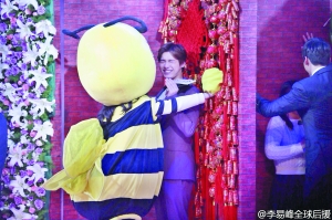 时下最流行的“壁咚”也在现场重现。面对“小蜜蜂”人偶来势汹汹的壁咚,李易峰难逃被“强吻”,事后他解释生活经验少,从来没“壁咚”过别人,反倒是拍戏献出了“第一次”。