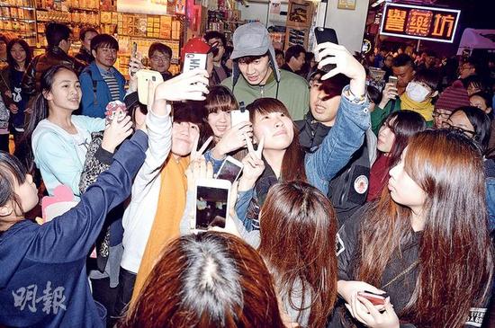李光洙与王霏霏在黄大仙时,大批粉丝围观拍照